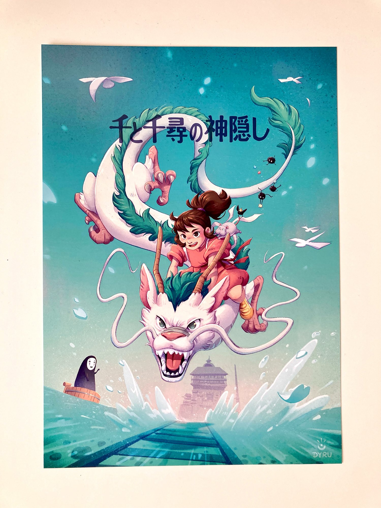 + Print of our gang from Spirited Away - taking a flight on Haku the dragon