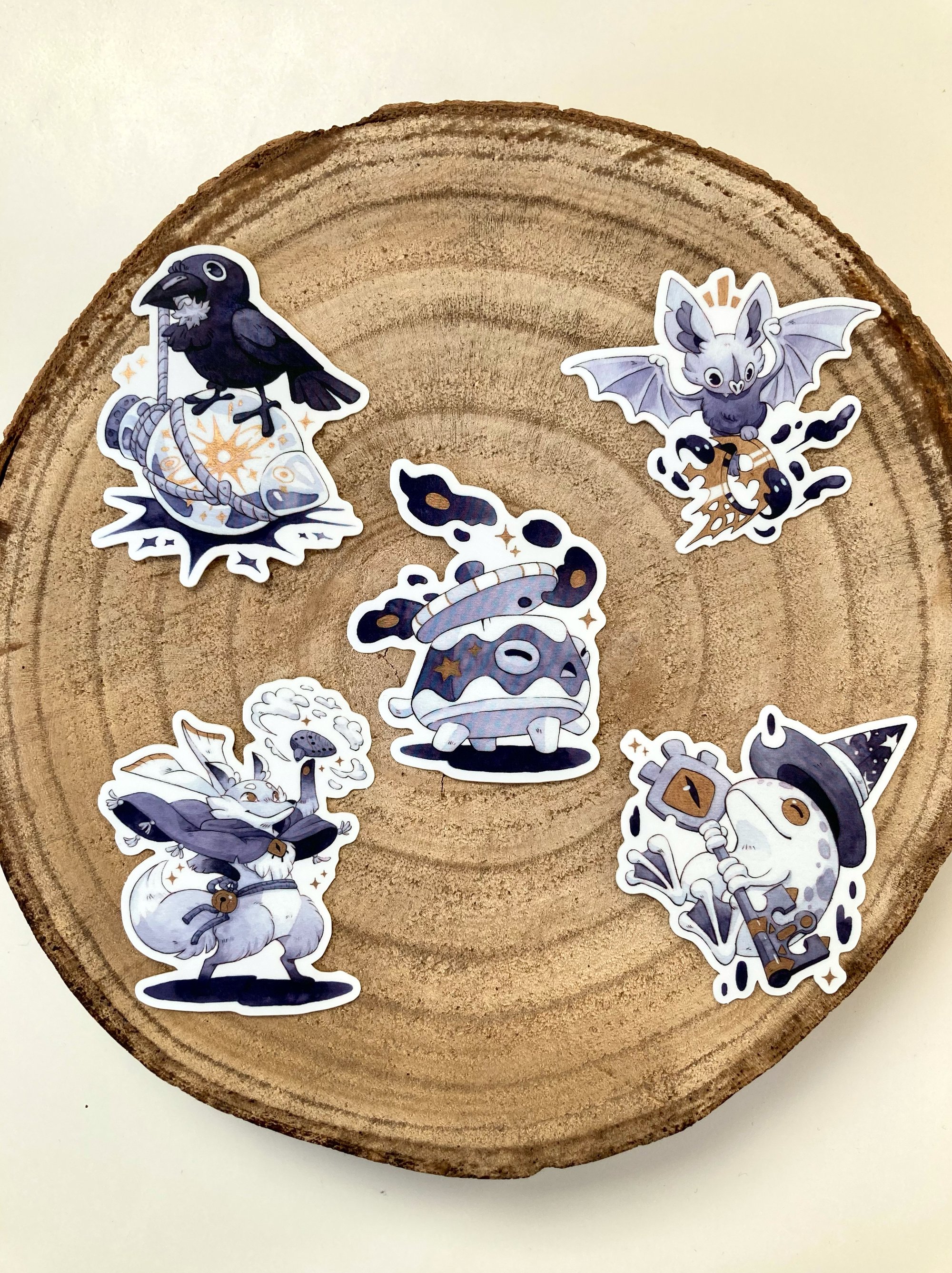 + Sticker set of 5 of my Inktober animals with gold foil details!