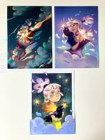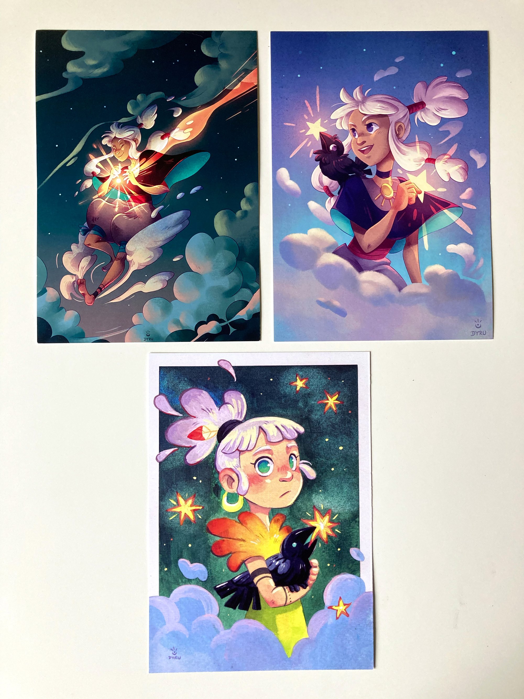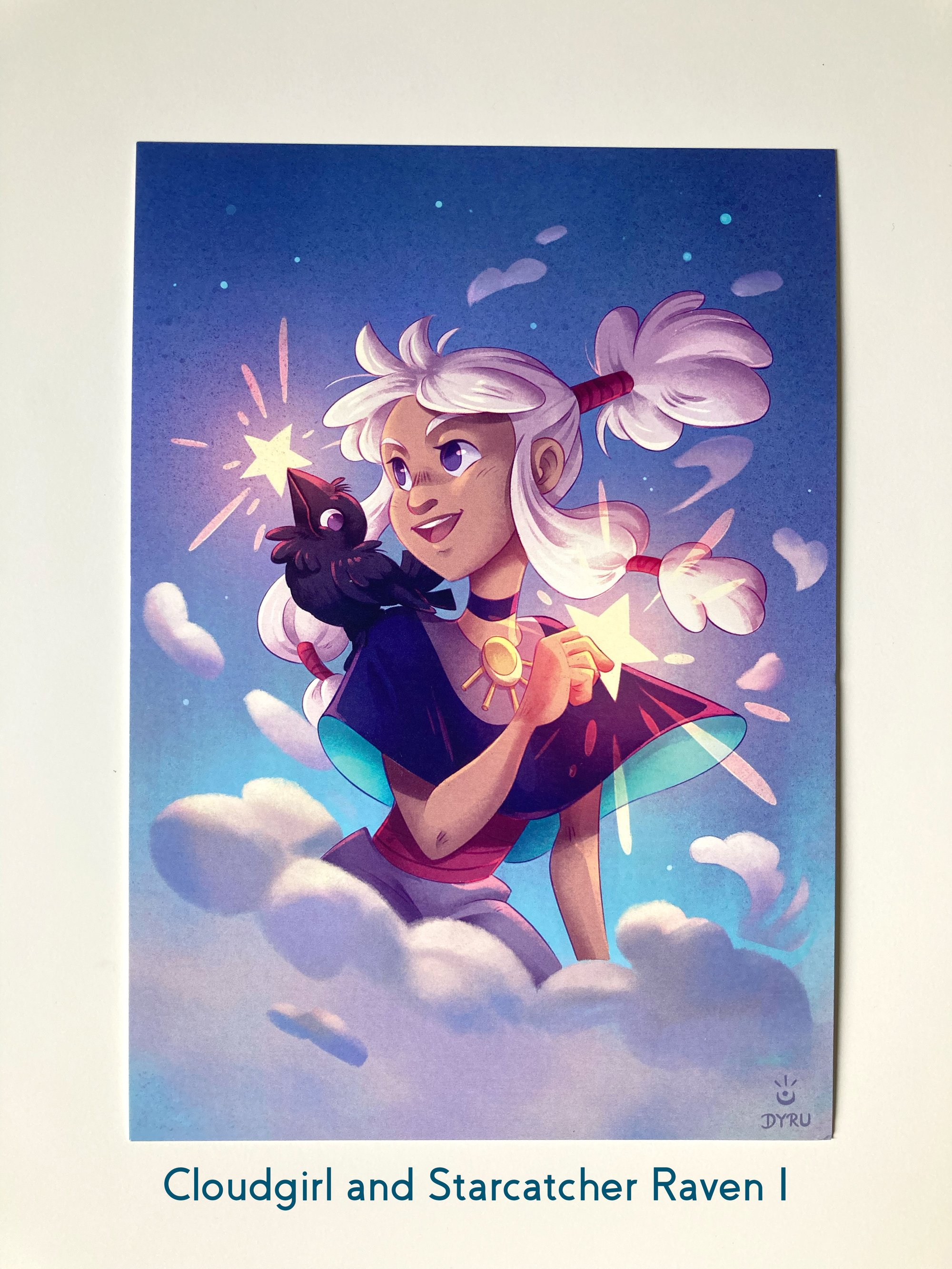 + Some illustrations of a happy magical cloud walker girl and her star catching raven