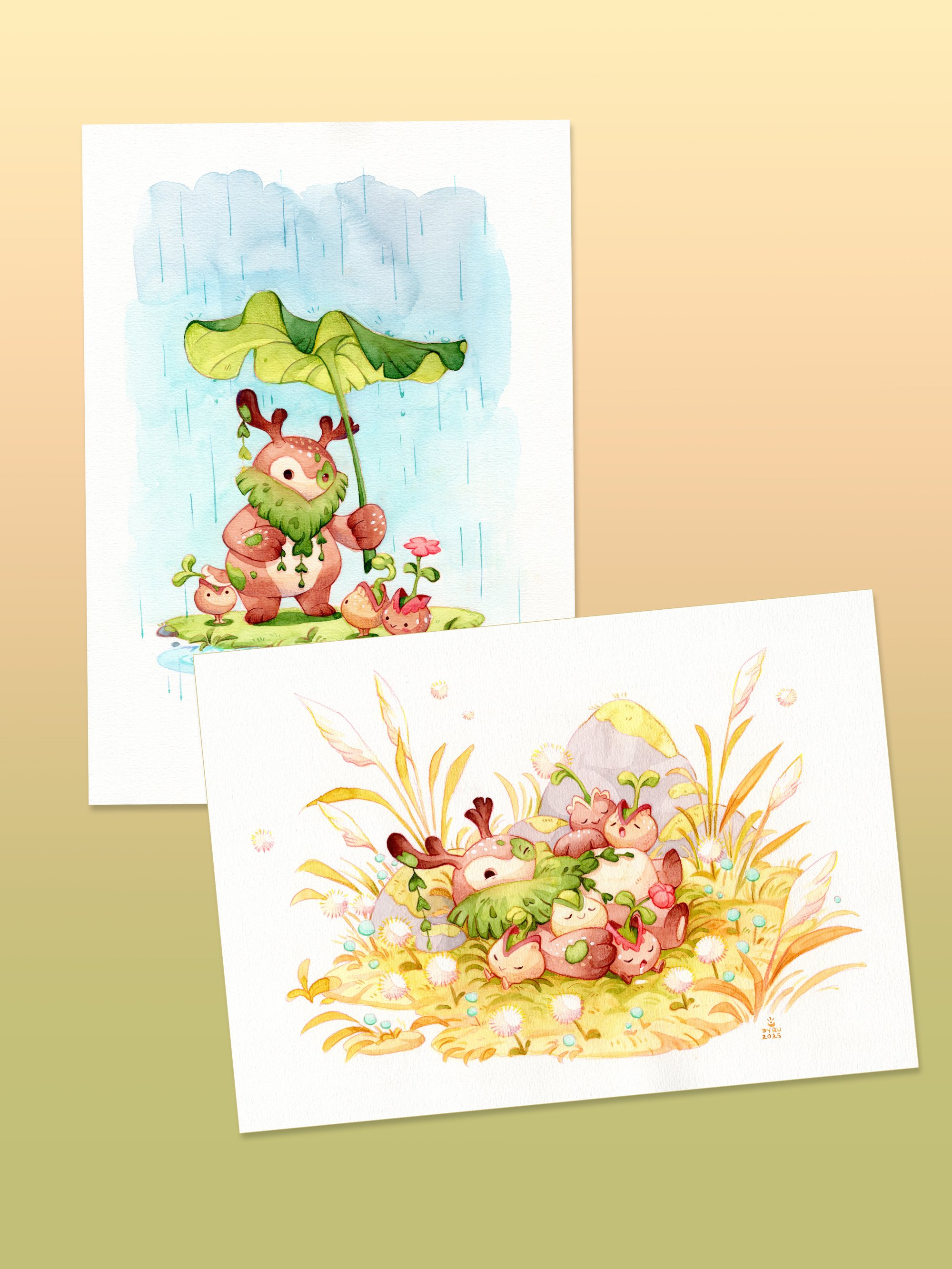 + FINE ART PRINT of traditional watercolor illustrations of nature guardians