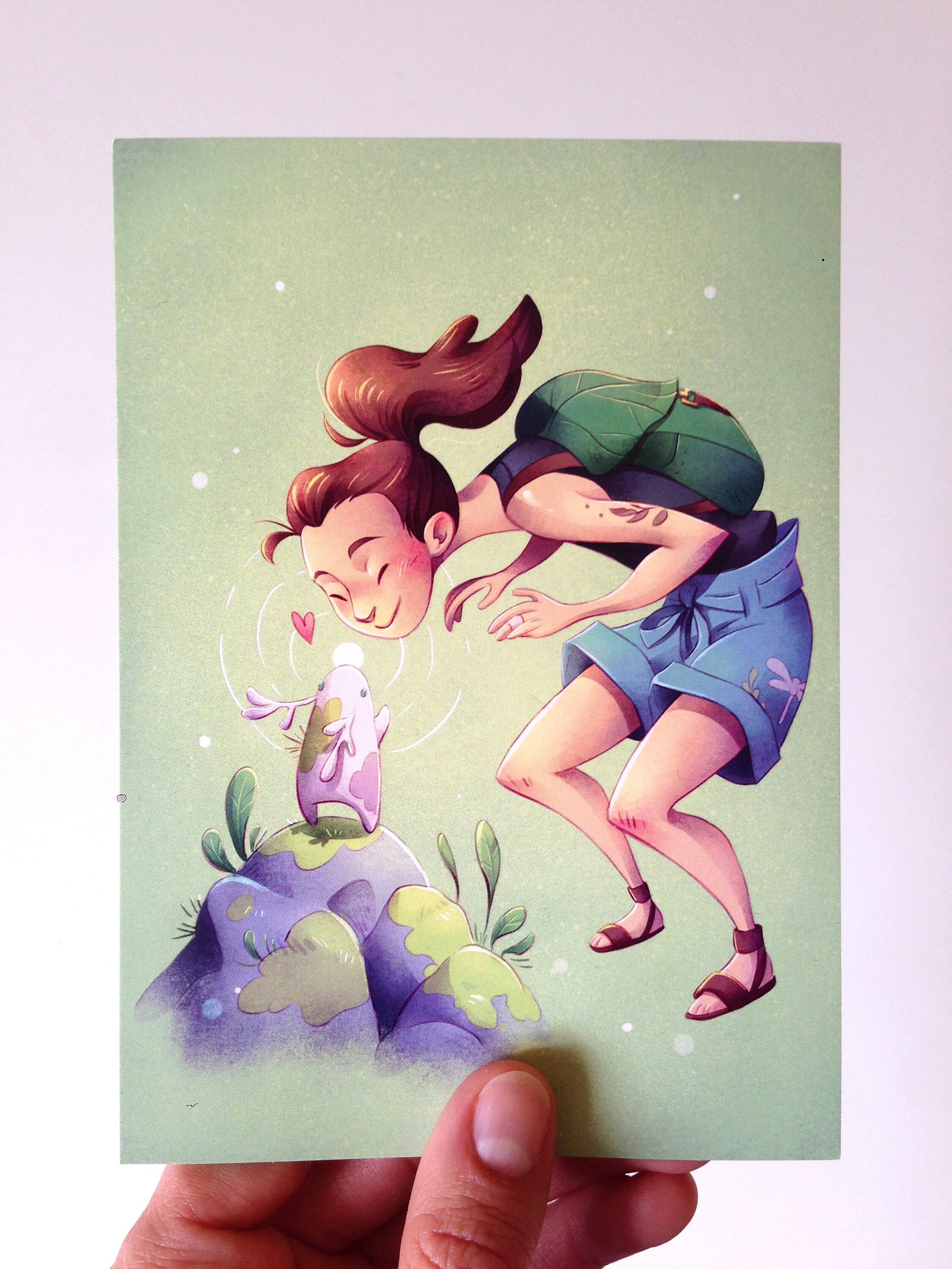 + Some illustrations of hikers befriending some nature spirits and illustration of my dear girl holding our beloved blue ball called "Earth"